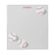 This baseball themed notepad for boys or girls features 3 white baseballs with red stitching that appear to have stopped rolling right on the notepad - baseball player's name is customizable - by katz_d_zynes