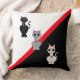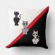 Three beautiful cats and a diagonal red stripe on black and white background. Cats are in black, grey and white colors. Ideal for cat lovers.