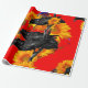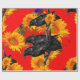 THREE BLACK BIRDS IN SUNFLOWER FIELDS WRAPPING PAPER