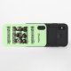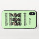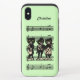This iPhone slider case lets you carry your items inside your phone. It is light green with three black cats playing musical instruments standing on bars of black music notes. Customize your name with the template.