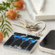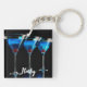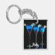 Three blue cocktails with cherry on black keychain