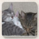 Three cute cats all snuggled up! Sweet coasters for any cat lover!