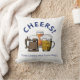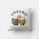 Modern, stylish throw pillow showing a cartoon of three beers and CHEERS! at the top in curved text. At the bottom, there is customizable text which you can change to your event, your establishment or your name, etc. This Cheers Beers PILLOW would make an ideal accessory during Oktoberfest, national beer festivals, Mondial de la Biere, National Beer Day, or for any beer-themed occasion, etc. Matching items and party supplies are available in the CHEERS & BEERS Collection by Berean Designs. The background color can be changed to suit your decor, simply by clicking the Customize Further button and selecting from the color palette.