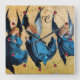 THREE CHRISTMAS ANGELS IN BLUE MONOGRAM SQUARE WALL CLOCK