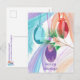 Pretty paint pour design of three Christmas balls, with a placeholder for your text is printed on the front of the postcard. The Christmas balls are painted in a paint pour type design with a spray of a pine needle branch on the side. The colors include shades of turquoise and teal, orange, purple, and pink. Thank you for shopping at CherylsArt on Zazzle.