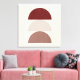 A modern minimalist style abstract artwork with three harmoniously colored painted crescents with a subtle brush stroke texture. With a cream colored background.