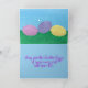 Pretty and colorful Easter Eggs in the grass, with a blue sky in the background, with the words, Happy Easter, written across the sky in purple, are printed on custom greeting cards. The eggs are pink, purple, and yellow, each one is a specific color with various blends of that color on the egg. The inside verse says, May colorful Easter Eggs of happiness roll into your life. The text can easily be easily customized on the template forms. Thank you for shopping at CherylsArt on Zazzle.