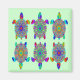 A bright, colorful sea turtle with a kaleidoscope-patterned shell and a body of swirling colors. A simple and brilliantly colored sea turtle design.