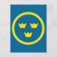 Three Crowns (Swedish: Tre Kronor) is a national emblem of Sweden, present in the Coat of Arms of the Realm of Sweden, and composed by three yellow or gilded coronets ordered two above and one below, placed on a blue background. The emblem is often used as a symbol of authority by the Swedish government and by Swedish embassies around the world, but also appears in other less formal contexts, such as the Swedish national men's ice hockey team, who wear the symbol on their shirts and hence are called "Three Crowns" , and atop the Stockholm City Hall built 1911-1923. The Three Crowns are also used as the roundel on military aircraft of the Swedish Air Force and as a sign on Swedish military equipment in general.