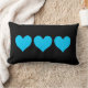 Three Cute Aqua Blue Hearts Lumbar Pillow