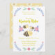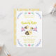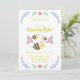 an invitation with a picture of three cute bees, and a honey comb as a background on the other side