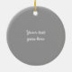 Lightweight, smooth, pure white ornament with nice sheen. Perfect size to be seen from across the room ... and to attract closer inspection! Price was great for ordering enough for the whole family! Clear, bold black design just as requested. Matches the order exactly. Just so nice!