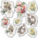 A sticker sheet has 9 pieces stickers of 3 different type of flowers. They can be used as envelope seals or decoration on other things.