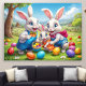 Celebrate Easter joy with this vibrant poster featuring three playful bunnies surrounded by colorful eggs in a bright spring meadow. Perfect for kids’ rooms, nurseries, or festive seasonal décor, this artwork captures the charm and happiness of Easter.