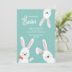 An Easter invitation with three adorable bunnies. Perfect for your Easter party. The card is easy to customize with your wording, font, font color, paper shape options and choice of paper types. Not exactly what you're looking for? All our products can be custom designed to meet your needs at no extra charge. Simply contact us at askpixieprints@aol.com. Coordinating products available!