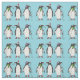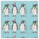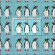 Three Festive Christmas Penguins On Light Blue Fabric