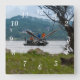 Wall clock featuring a photo of three guys fishing on a foggy and damp morning at Table Rock Lake near Branson Missouri.