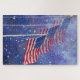 Three Flags puzzle. A design with a dark blue sky, stars and three flags. Two of the flags are a a little more transparent then the front flag for effect.
