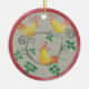 Celebrate the 12 Days of Christmas with this hand painted ornament of Three French Hens and hand lettered, “The Third day of Christmas on the back. 2.87” round, this this watercolor porcelain ornament adds a touch of whimsy to a special gift or hung on a tree. One of a set of twelve scenes illustrating the traditional carol, The 12 Days of Christmas.