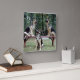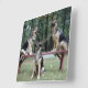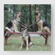 Photograph of three German Shepherd dogs posing on and in from of a bench are the background for this handsome square wall clock.