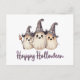 Celebrate the magic and mischief of Halloween with our enchanting postcard. Its delightful design, featuring three cute ghosts in witch's hats against a white background with a gray "Happy Halloween" message, captures the essence of this beloved holiday. Share the spirit of Halloween with loved ones near and far, and make memories that will last a lifetime.