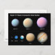 Illustration depicting the three giant planets orbiting the Sun-like star Kepler 51 as compared to some of the planets in our solar system. These planets are all roughly the size of Jupiter but a very tiny fraction of its mass. This means that the planets have an extraordinarily low density, more like that of styrofoam rather than rock or water. The planets may have formed much farther from their star and migrated inward. Now their puffed-up hydrogen/helium atmospheres are bleeding off into space. Eventually, much smaller planets might be left behind. The colors in this illustration are imaginary.