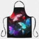 Three luminous, red, purple, green, textured, night butterflies on black luminous background.