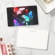 Three luminous, red, purple, green, textured, night butterflies on black luminous background.