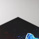 Three luminous, red, purple, green, textured, night butterflies on black luminous background.