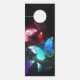 Three luminous, red, purple, green, textured, night butterflies on black luminous background.