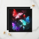 Three luminous, red, purple, green, textured, night butterflies on black luminous background.