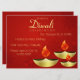 Three gold diyas on a red flower background. Perfect for Diwali.