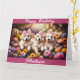 Three Golden Retriever Puppies with Flowers Card