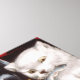 This design features an illustration by Currier and Ives. It depicts three white kittens standing on a table. One of the kittens is drinking from a glass of port wine. The other kitten has opened a tin of sardines and is happily eating a fish. The kitten in the middle appears to be jealous of the kitten that is drinking the wine and is acting aggressively. It's a cute image of pet cats enjoying themselves at a party that has been thrown by their human owners. The original artwork was completed in 1871.