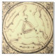 Three running hares sharing three ears is an ancient mystical theme found throughout Europe and the Middle East. The traditional poem in the border reads, "Rabbits three and ears as few, Yet each Rabbit has its two." The sepia coloration gives this tile a neutral, vintage look.