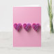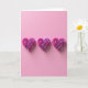 This card features three sculpted hearts lined up side by side on a soft pink background, like a quiet little trio sharing the same sweet moment 🥰. Each heart looks three-dimensional, built from wavy, ribbon-like layers that curl inward and create a gentle sense of motion. The color shifts from rich magenta along the outer folds to a lighter lavender at the center, giving the hearts a tender, blooming look ❤️. Soft, diffused lighting highlights the curves and adds faint shadows underneath, making them feel almost touchable. The roomy empty space above the hearts keeps the scene calm and lets your eyes linger on the layered details. There’s no printed message shown on the front, leaving plenty of open space where text could sit near the top in a simple white or deeper pink tone. The three hearts are evenly spaced in a straight horizontal row, with delicate shadows grounding each one against the pink surface.