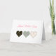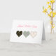 My digital design has three hearts in shades of pink, gray, green and black on a crisp white background. Each heart has a trellis of ivy and rose buds. Your message in the pretty pink font can be customized on the front and inside of the card.