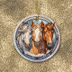Here's a beautiful keepsake ornament for that very special grandson, son, granddaughter or daughter. The front has an image of three majestic horses standing together. The image is placed on a pale pink and lavender bokeh background. The back of the ornament has the same background, with text fields for you to customize. Make it say whatever you'd like!