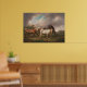 Beautiful scene feature 3 horses standing in a grass covered field with trees in the background and a cloud covered stormy sky. The original painting was created by English artist Charles Town in Liverpool in 1836.