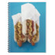 Three hot dogs in buns notebook
