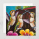 Three stunning little hummingbirds play among some bright flowers, an adorable small oil painting with a bright blue sky. This one needed no caption but you can edit it to add one if you wish. Bright vibrant and uplifting.