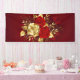 The composition of two artistically painted red roses and one golden rose, decorated with gold, jewel leaves on textured background.