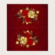 The composition of two artistically painted red roses and one golden rose, decorated with gold, jewel leaves on textured background.