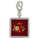The composition of two artistically painted red roses and one golden rose, decorated with gold, jewel leaves on textured background.