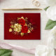 The composition of two artistically painted red roses and one golden rose, decorated with gold, jewel leaves on textured background.