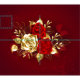 The composition of two artistically painted red roses and one golden rose, decorated with gold, jewel leaves on textured background.