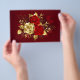 The composition of two artistically painted red roses and one golden rose, decorated with gold, jewel leaves on textured background.