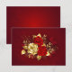 The composition of two artistically painted red roses and one golden rose, decorated with gold, jewel leaves on textured background.