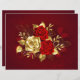 The composition of two artistically painted red roses and one golden rose, decorated with gold, jewel leaves on textured background.