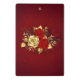 The composition of two artistically painted red roses and one golden rose, decorated with gold, jewel leaves on textured background.